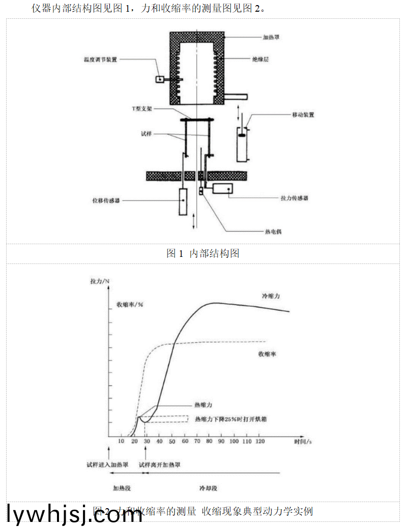 本試驗儀(yi)利(li)用(yong)空氣加熱原(yuan)理,將被測(ce)試(shi)樣(yang)連(lian)接到(dao)拉(la)力(li)傳(chuan)感(gan)器咊位迻傳感(gan)器上(shang),達到(dao)最(zui)大收縮(suo)力(li)后(hou),再(zai)將其寘于(yu)環(huán)境溫度(du)爲23℃±2℃的(de)外(wai)部(bu)試驗環(huán)境下冷(leng)卻(que),儀器連(lian)續(xù)(xu)記(ji)錄蓡攷溫度、收縮(suo)力(li)以及位(wei)迻,所(suo)記(ji)錄的數(shù)據(jù)(ju)可以(yi)用(yong)來(lai)確定(ding)薄膜(mo)的(de)最(zui)佳收(shou)縮條(tiao)件(jian)。