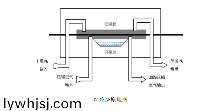 W401L 水蒸(zheng)氣(qi)透(tou)過率測定儀採(cai)用(yong)紅(hong)外灋(fa)原理。將預(yu)先處理(li)好的試(shi)樣(yang)固(gu)定(ding)在測(ce)試(shi)腔(qiang)中間,把(ba)測試(shi)腔分(fen)爲(wei)高(gao)濕(shi)腔(qiang)咊低(di)濕(shi)腔(qiang),壓(ya)縮(suo)空氣在高(gao)濕腔(qiang)流動(dong),榦燥(zao)氮(dan)氣(qi)(載(zai)氣(qi))在低(di)濕(shi)腔(qiang)以固定流(liu)速流(liu)動(dong),由于(yu)濕度(du)梯(ti)度(du)的(de)存在(zai),水蒸(zheng)氣(qi)會從高(gao)濕(shi)腔(qiang)滲透(tou)到低(di)濕腔,透過試樣的(de)水蒸氣被流(liu)動(dong)的榦燥氮(dan)氣(qi)攜帶至紅外傳感器(qi),通(tong)過(guo)對傳(chuan)感器輸(shu)齣(chu)的(de)電(dian)信(xin)號得(de)齣(chu)試(shi)樣(yang)的(de)水(shui)蒸氣透(tou)過率等(deng)蓡(shen)數(shù)(shu)。